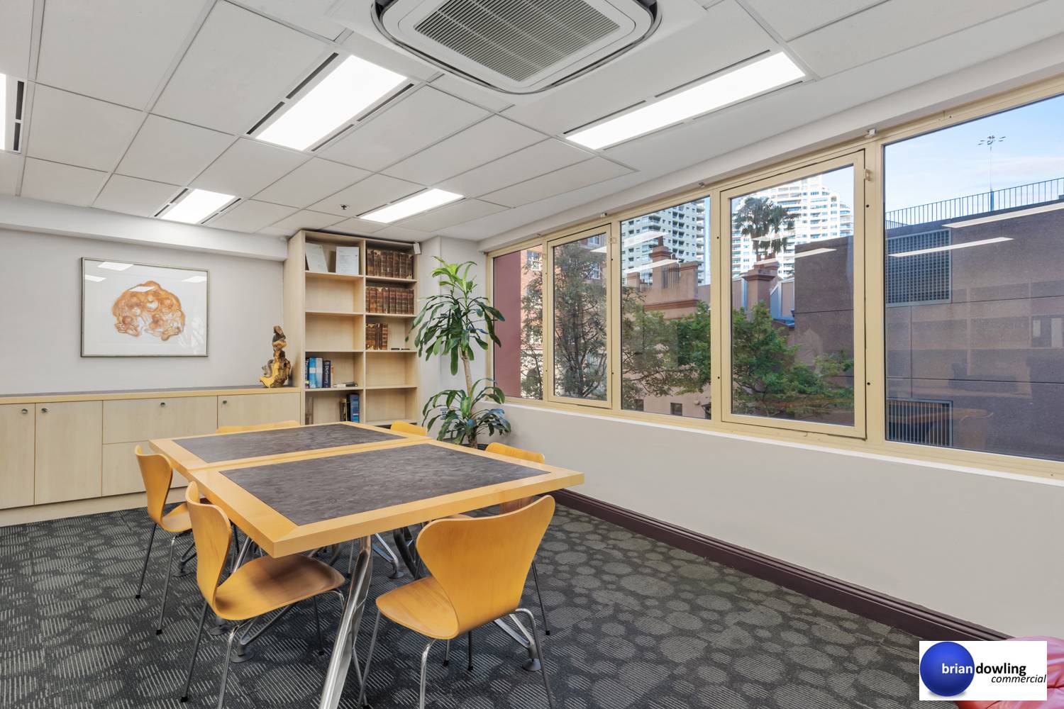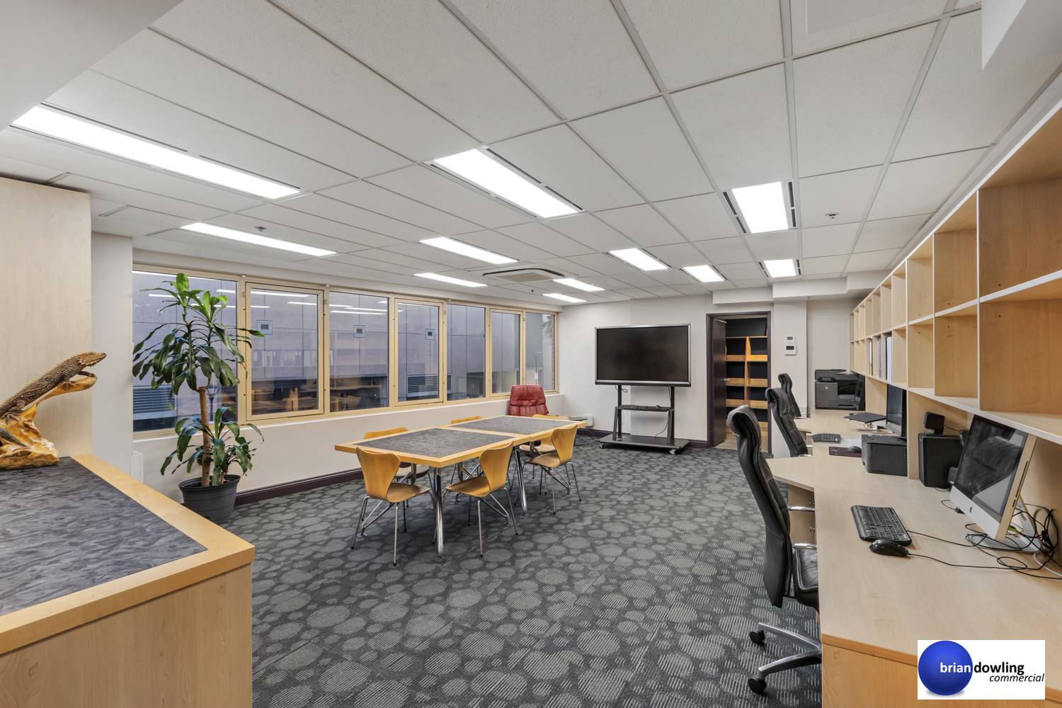 - Built-in workstations plus meeting table and storeroom